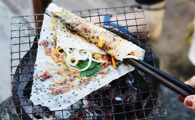 Khá với món bánh tráng cuốn hay bánh tráng nướng trứ danh của Sài Gòn, bánh tráng cuốn dẻo của Phan thiết thơm quyến rũ với sự kết hợp của mắm ruốc, trứng cút, tóp mỡ. Bánh tráng được nướng trên than, sau đó cuốn lại ngay khi còn nóng như một cách hoàn hảo để tổng hòa các hương vị với nhau.